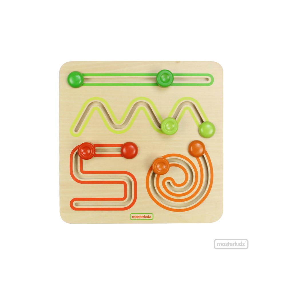 Un divertido juego de entrenamiento de habilidades motoras finas que presenta 4 movimientos básicos de la mano: movimiento recto, movimiento de sube y baja, movimiento circular y giro. Estos movimientos permiten el desarrollo posterior de la escritura. Pequeñas manos sujetarán las clavijas de madera y las moverán siguiendo las instrucciones de las flechas. Contiene 1 tablero de madera. Recomendado para niños desde los 2 hasta los 3 años de edad.